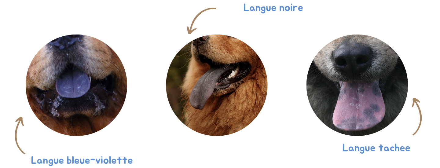 Attention, chez ces chiens, on parle surtout de taches, si la langue change soudainement de couleur et s'approche du bleue, les paragraphes qui suivent vous concernent.