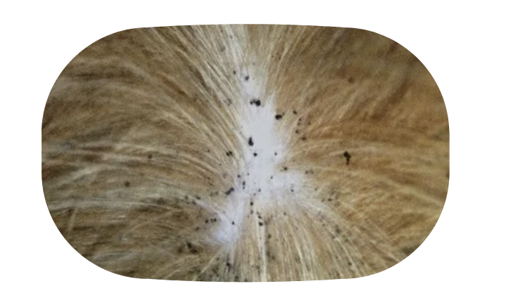 • petits points noirs sur le pelage de votre animal (excréments de puces), piqûres sur la peau ou rougeurs,